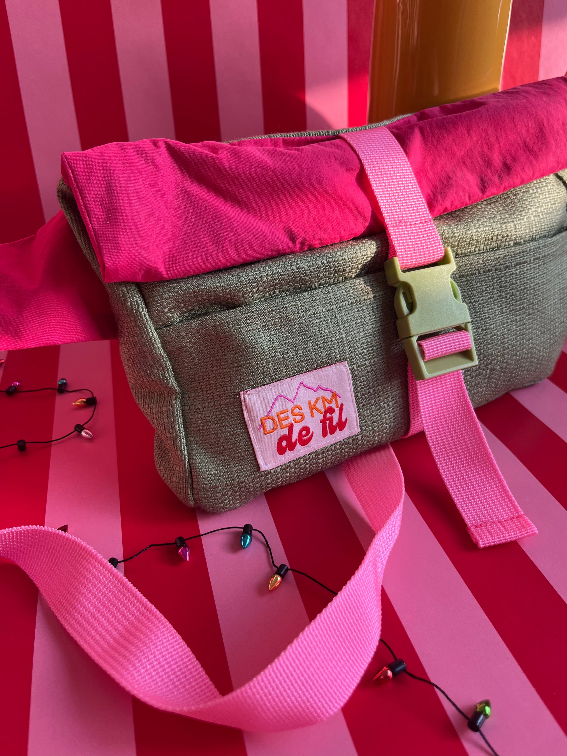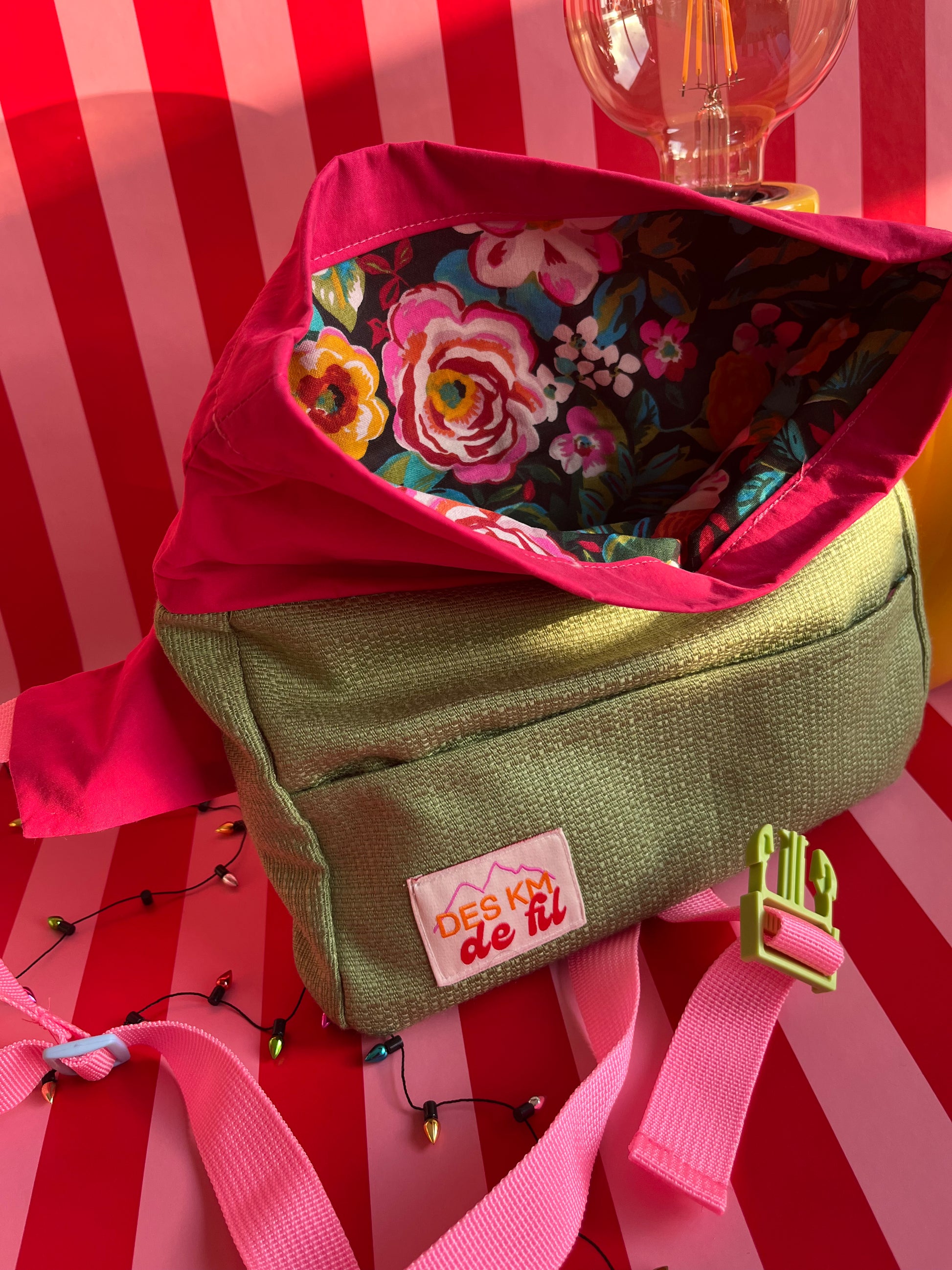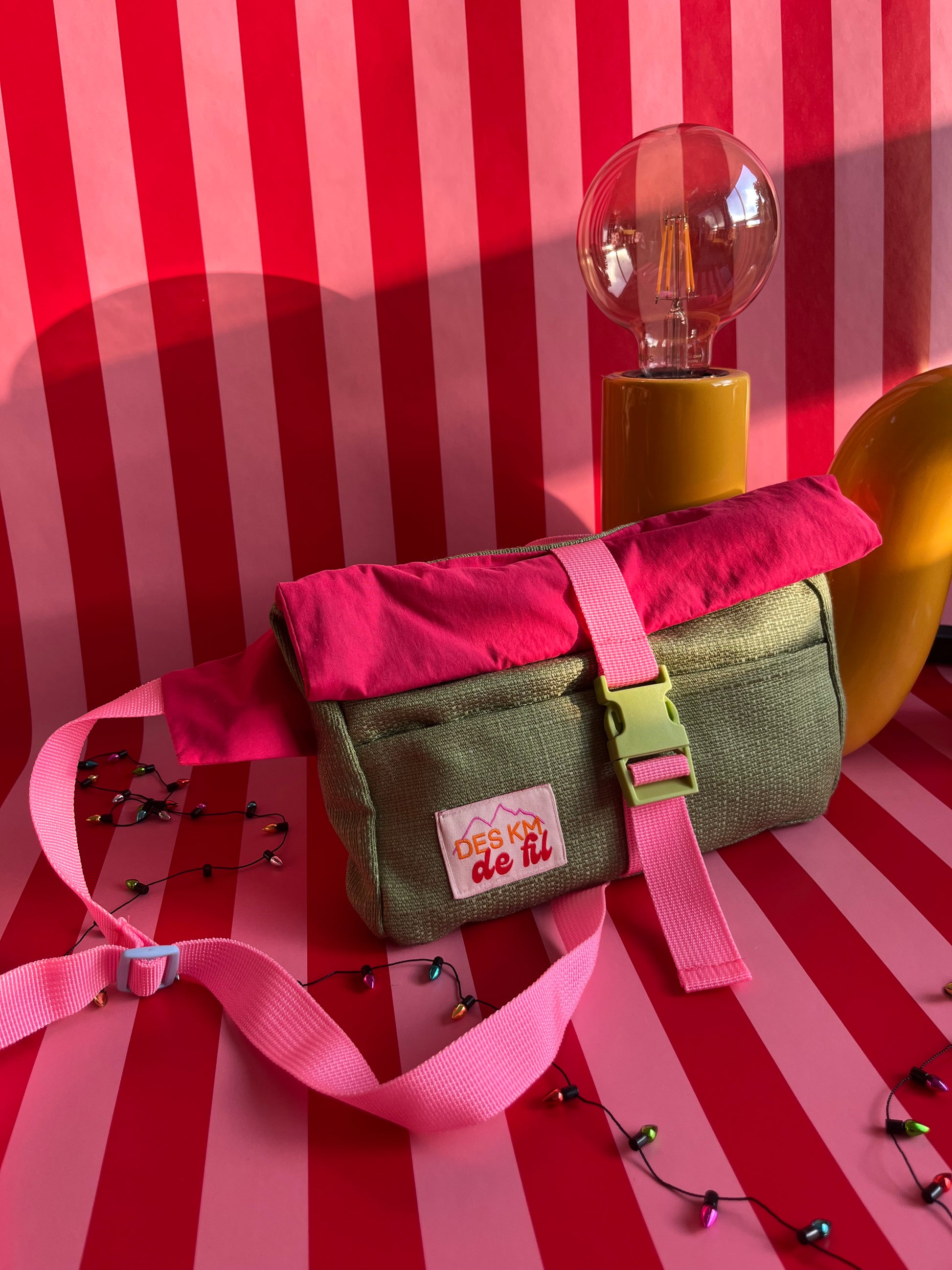 Inspirée de l'univers outdoor mais toujours en tissus de seconde main, cette banane en impose par son style unique.